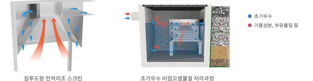 스크린을 설치하여 침전물에 의한 쇄석 공극막힘 현상 지연