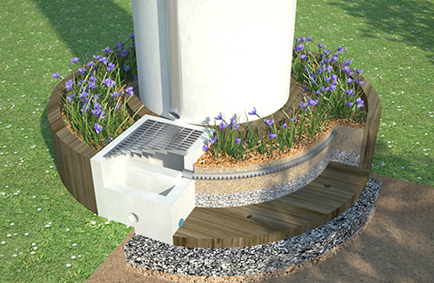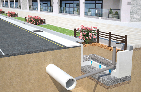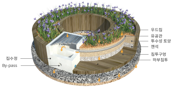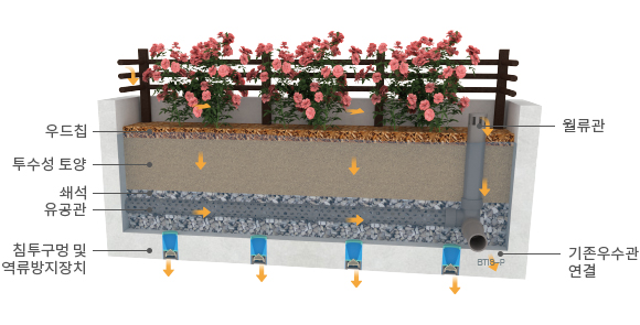 교각 하부에 설치, 초기우수를 1차 여과 후 토양으로 유도